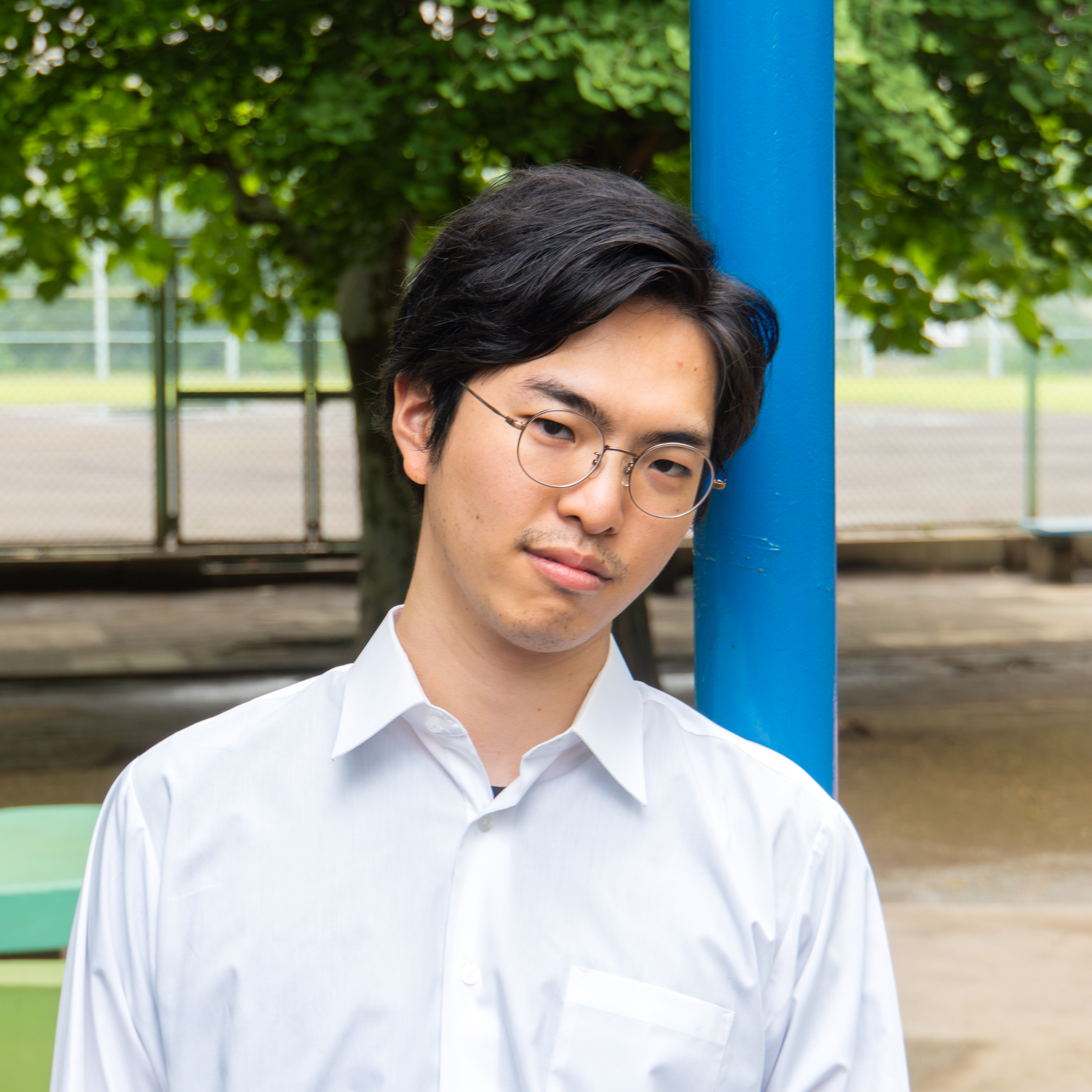 明治大学文学部在学中。母親の影響で歌舞伎や日本舞踊に触れる機会が多く、舞台芸術に興味を持つ。進学した明治大学で演劇サークル「活劇工房」に入部し、寺腰、三浦らと出会う。現在はサークル活動と並行して外部の団体で役者、スタッフの両面で活動中。ラーメンと阪神タイガースをこよなく愛する男。