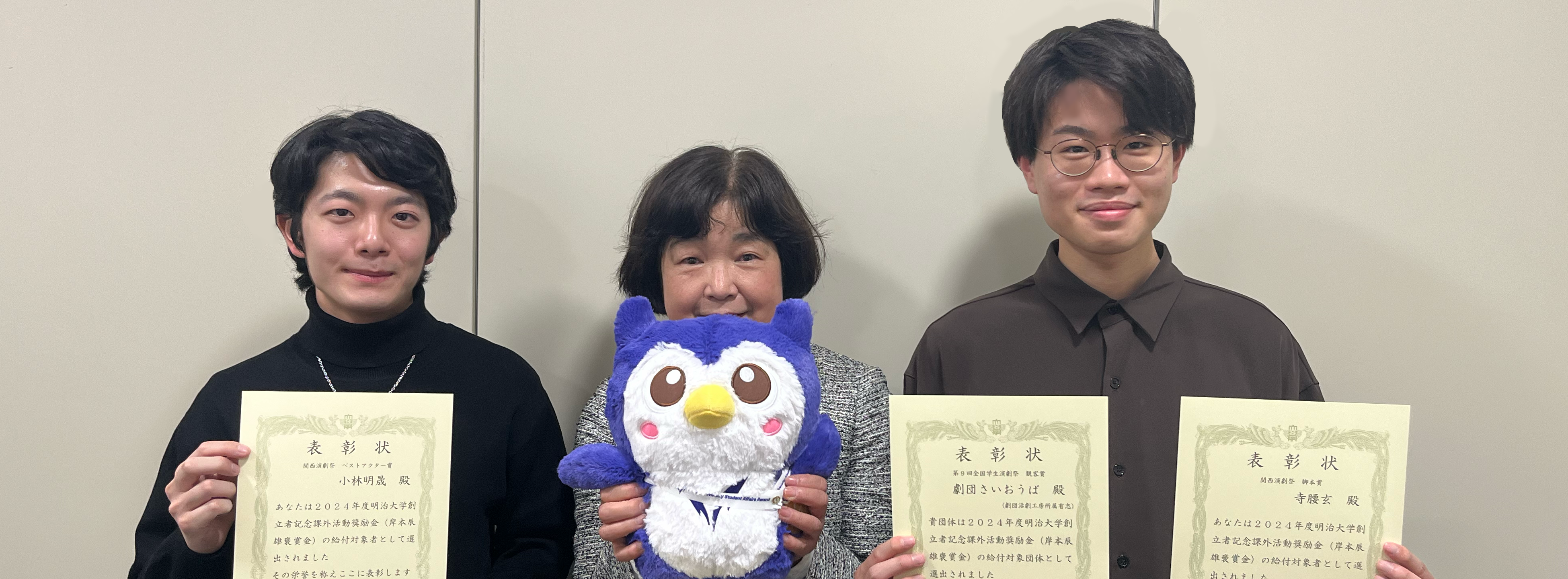 2024年の劇団さいおうばの活動(全国学生演劇祭観客賞受賞、並びに関西演劇祭脚本賞・ベストアクター賞受賞)が、2024年度明治大学創立者記念課外活動褒賞金(岸本辰雄褒賞金)の給付対象となりました。